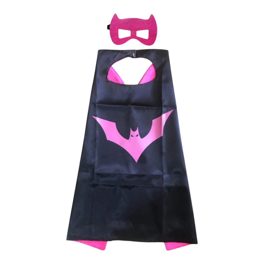 Vind je kind Batwoman en superhelden ook helemaal geweldig? Dan is deze zwart/roze Batgirl cape met bijpassend masker van het merk Jobber perfect voor eindeloos speelplezier! De cape is zeer comfortabel en makkelijk om te doen. Met deze Batwoman verkleedset kan je kind rollenspellen spelen in de fantasiewereld van Batwoman en misdaden bestrijden als de vrouwelijke tegenhanger van superheld Batman.