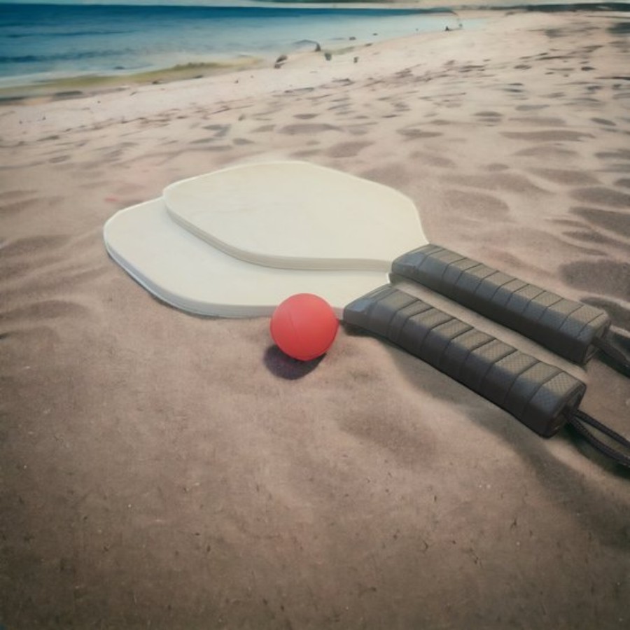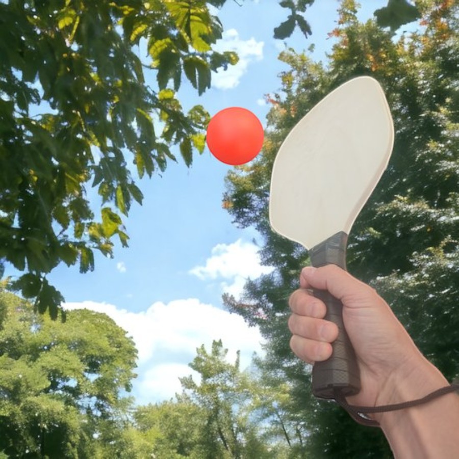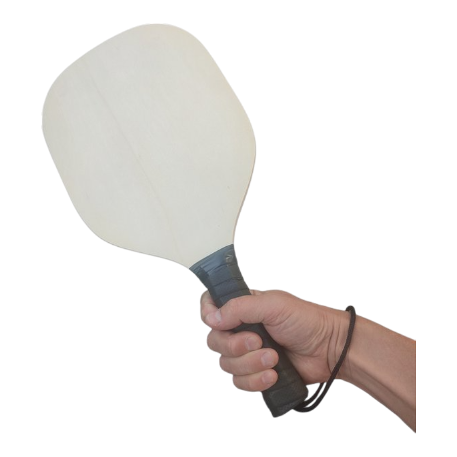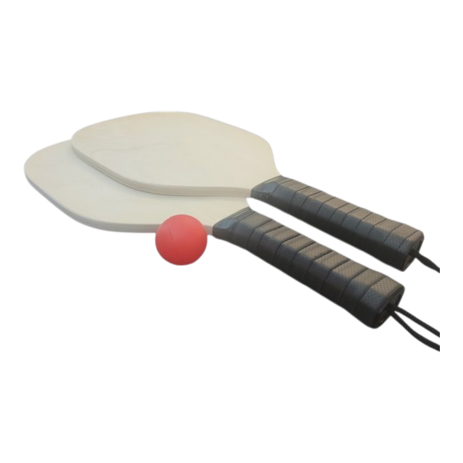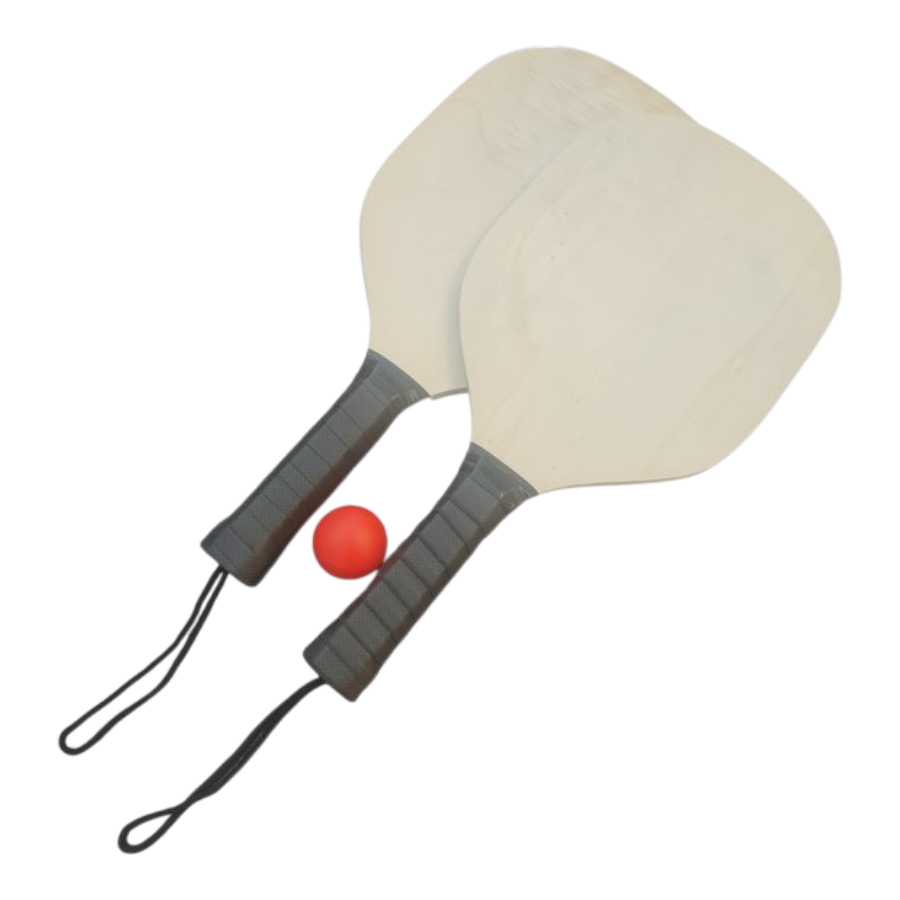 Stevige houten rackets met zwarte rubber grip voor optimale houvast