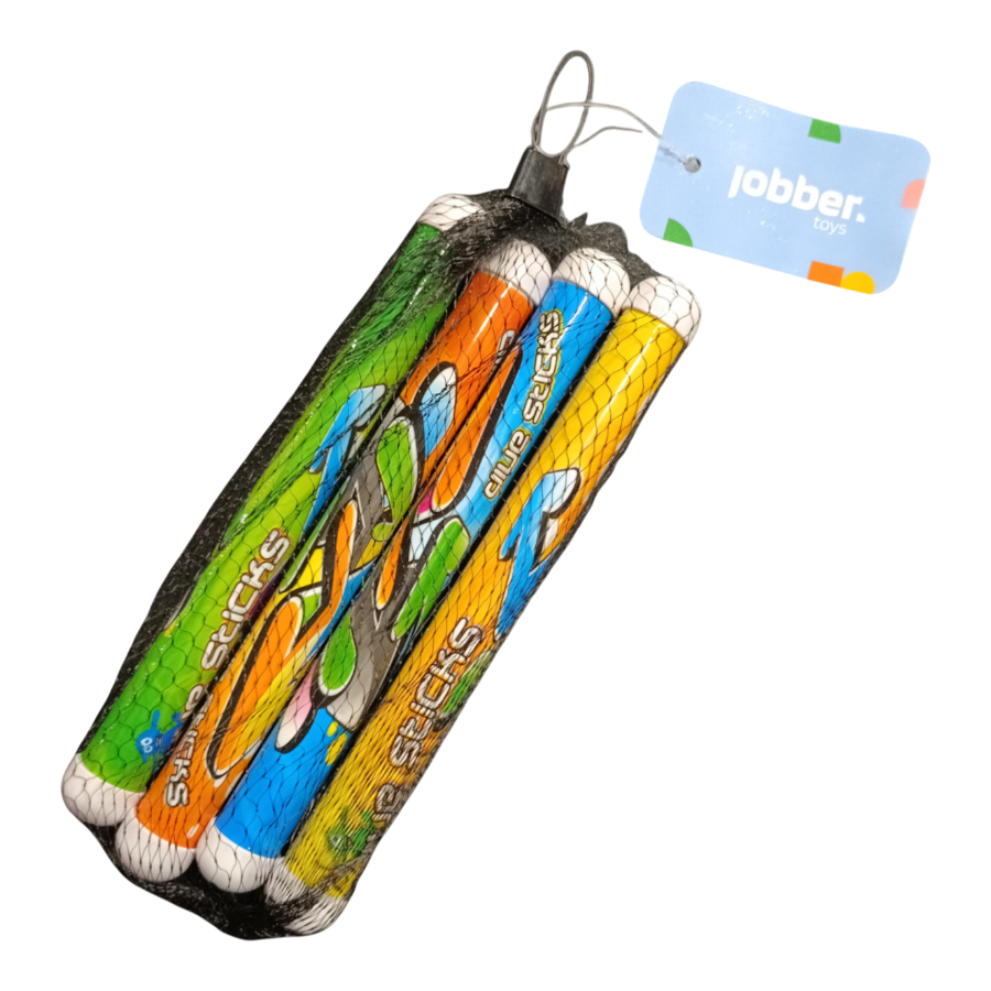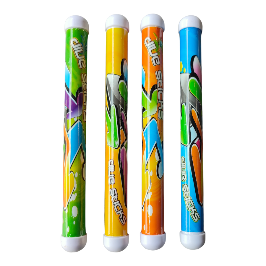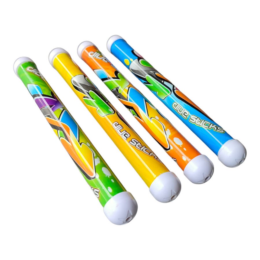 De set bevat vier duikstaafjes in verschillende kleuren, elk met een unieke graffiti print. Met een lengte van 21 cm en een diameter van 2 cm zijn ze perfect voor kleine handen om vast te pakken. Ben je klaar om het zwembadavontuur te beginnen? Met deze Jobber duikringen wordt elke zwemsessie een feest!