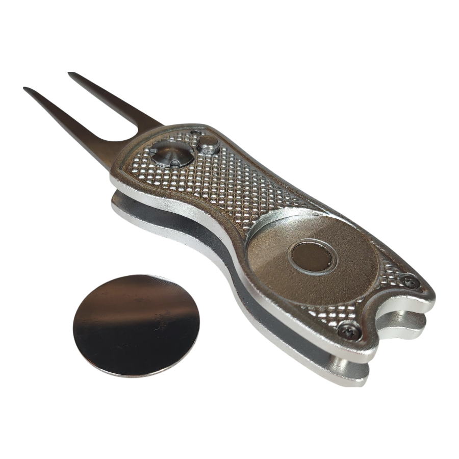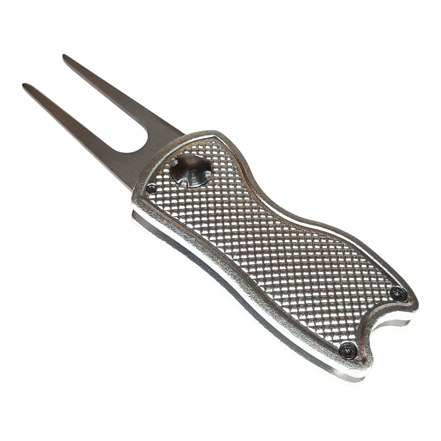 Ben je klaar om het jezelf makkelijker te maken op de golfbaan? Met de Jobber Pitchfork Zilver wordt het repareren van pitchmarks een fluitje van een cent. Deze uitklapbare metalen pitchfork is speciaal ontworpen om de balinslag op de green te herstellen, zodat andere golfers er weer met plezier gebruik van kunnen maken.