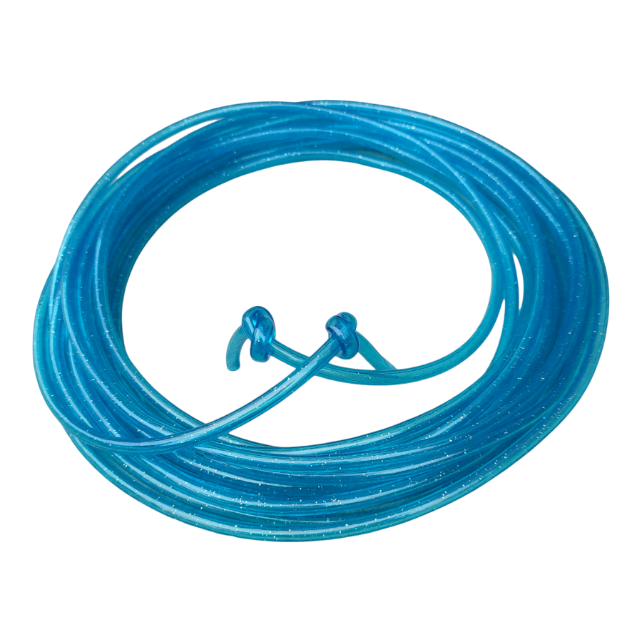 Dit springtouw valt meteen op door zijn sprankelende glitterblauwe kleur. Kinderen vinden het extra leuk om ermee te spelen en bewegen. Een echte blikvanger tijdens het buitenspelen.