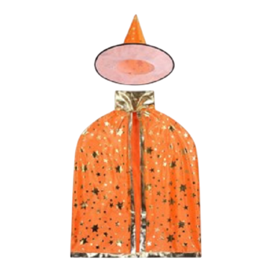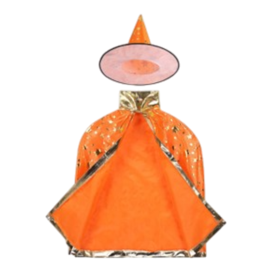 Vindt jouw kind tovenaars, Harry Potter en heksen ook helemaal geweldig? Dan is deze cape met hoed van het merk Jobber perfect voor eindeloos speelplezier! De set is ideaal voor kinderen die graag in de wereld van magie duiken. Met een opvallende oranje kleur en gouden details, zullen ze zich zeker als een echte tovenaar voelen.